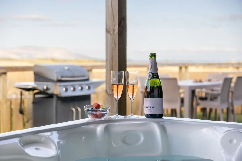 - Your own hot tub to soak away the stress as you take in the views.