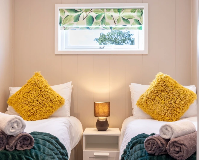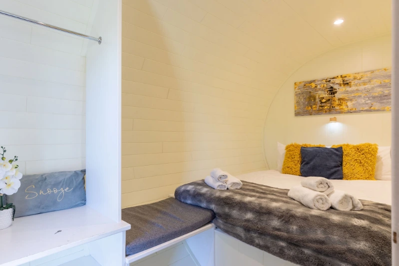 - Each POD sleeps up to 6 with a double bedroom, a second bedroom with two single beds and a sofa which folds out to create a double bed. All bedding is supplied for you.